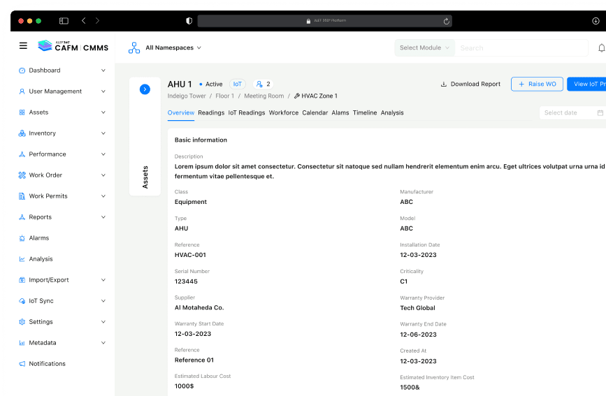 Centralize your asset operations and move beyond basic upkeep with intelligent maintenance workflows, condition-based alerts, and lifecycle tracking—all designed to extend asset lifespan and optimize performance.