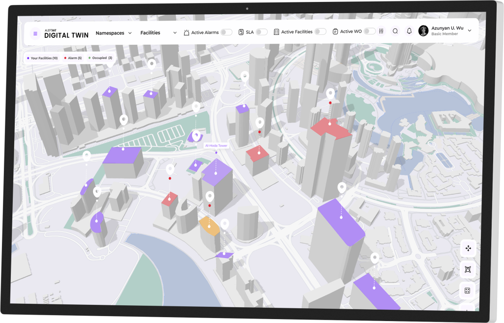 For asset owners managing large and distributed properties, fragmented data often slows decision-making. ALEF 360° Digital Twin brings everything into view—visually connecting assets, systems, and spatial data across your buildings. It integrates live inputs from ALEF 360° IoT, iBMS, and CAFM | CMMS modules into an interactive layer, helping you assess conditions, understand context, and real-world performance in an intuitive and user-friendly manner.