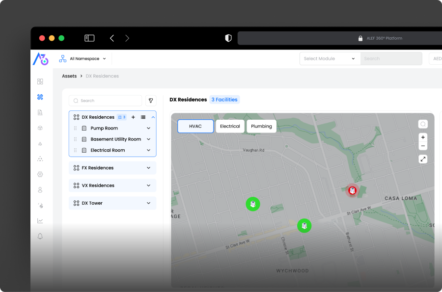 - Convert alarms into work orders within the integrated ALEF 360° CAFM | CMMS