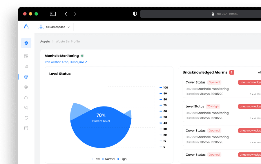 Monitor cover status and internal levels to detect tampering, flooding risks, and blockages—ensuring faster response and operational safety.