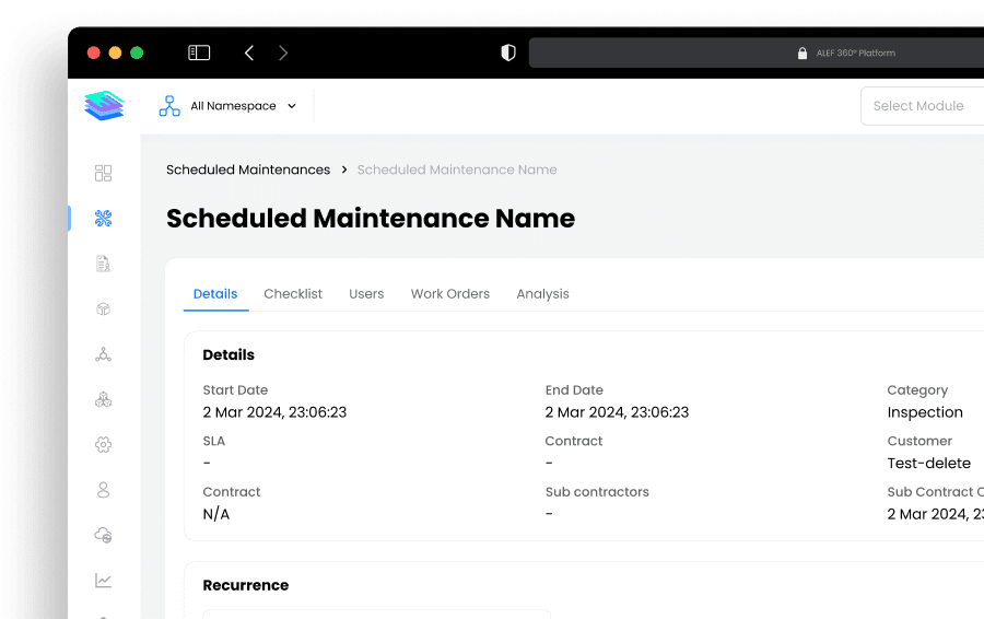 - إنشاء خطط صيانة متكررة بترددات يومية أو أسبوعية أو شهرية.