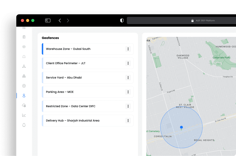 - يضمن نظام تحديد المواقع الجغرافية (Geofencing) تنفيذ المهام ضمن مناطق المنشأة المحددة.