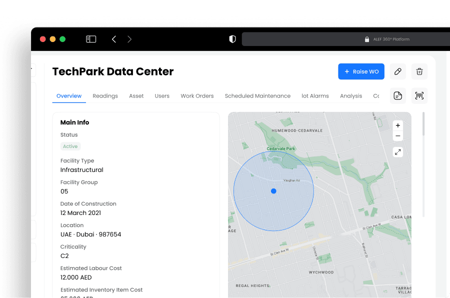 يجمع نظام ALEF 360° CAFM | CMMS العمليات والأصول وتقديم الخدمات في منصة واحدة، ويربط جميع نقاط الاتصال في بيئتك المبنية.
