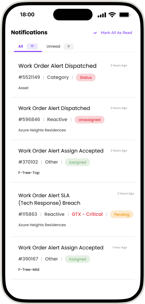اطلع على أوامر العمل المفتوحة، وسجل الخدمة، وحالة الأصول الصحية مباشرة ضمن النموذج لدعم اتخاذ إجراءات أسرع وتخطيط أفضل.