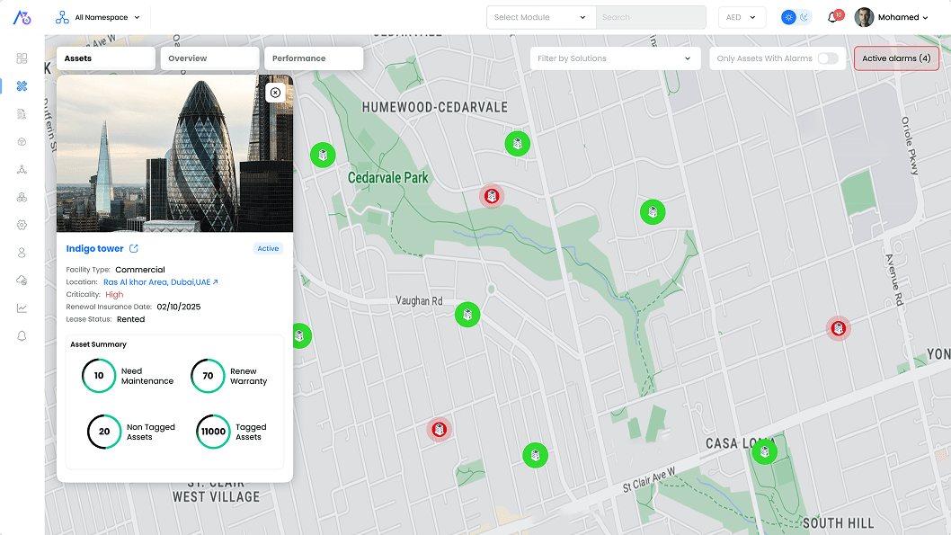 سواء كنت تشرف على مبنى واحد أو مجموعة من الأصول العقارية، يعمل نظام ALEF 360° لإدارة الأصول على مركزة بيانات أصولك لتمكين تخطيط أفضل، وإدارة دورة حياة أكثر ذكاءً، وقرارات استثمارية مستنيرة.