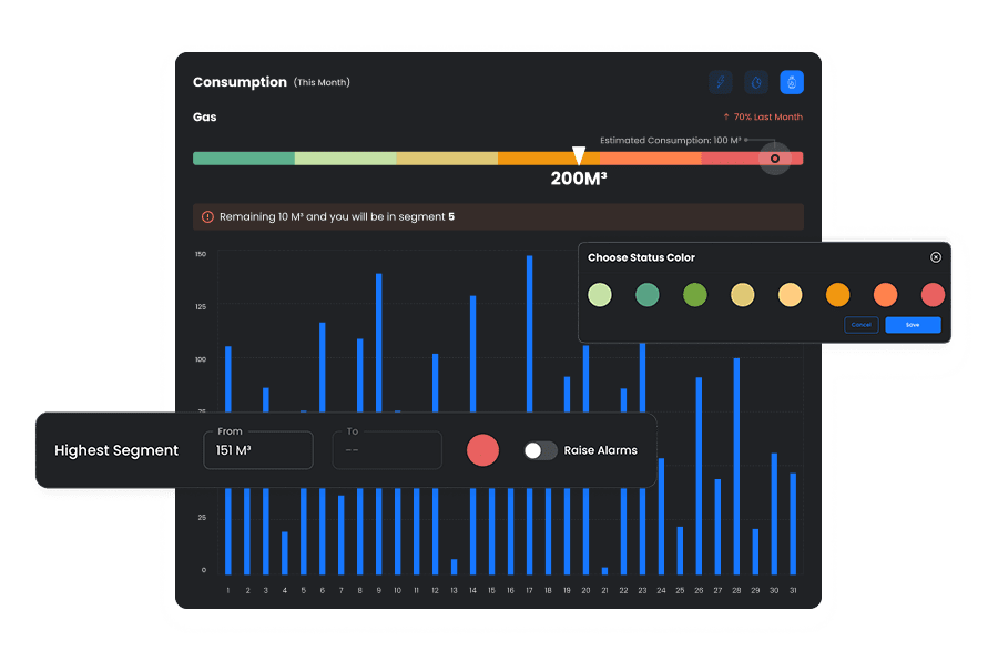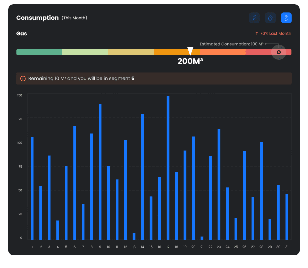 يتكامل حل قياس الغاز من Ignite Meter بسلاسة مع بنيتك التحتية الحالية. بفضل واجهته سهلة الاستخدام، يمكنك الوصول بسهولة إلى جميع المعلومات التي تحتاجها لإدارة استهلاك الغاز بفعالية.