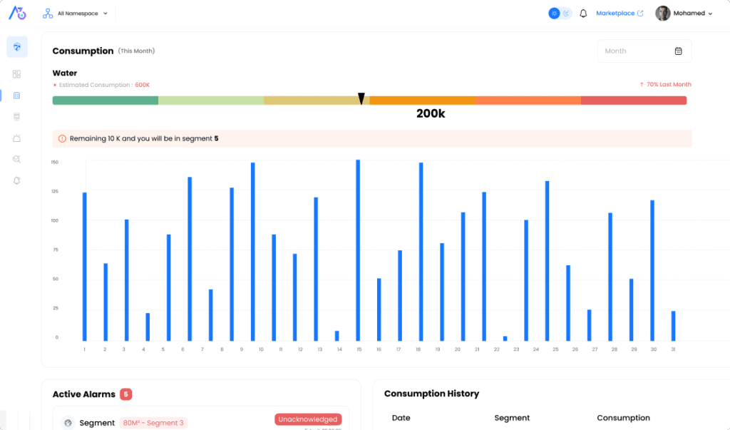 يجمع حلنا لقياس استهلاك المياه والمدعوم بإنترنت الأشياء (IoT) بين التكنولوجيا المتقدمة وواجهة سهلة الاستخدام لمراقبة استهلاكك للمياه في الوقت الفعلي.نضمن لكم احتساب كل قطرة، مما يُسهم في مستقبل أكثر استدامة.