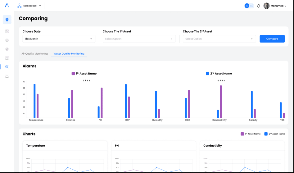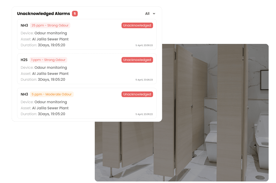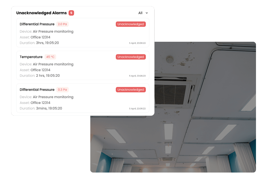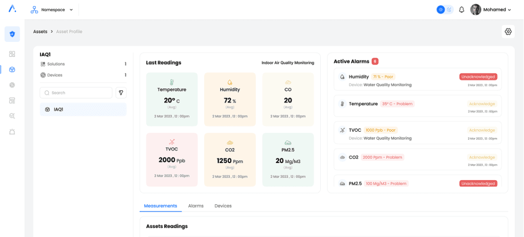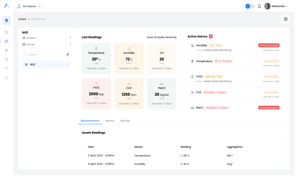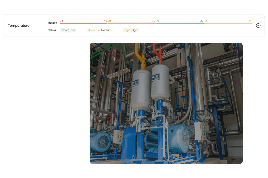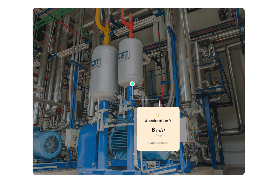 صُمِّم حلنا لإنترنت الأشياء (IoT) المخصص لمراقبة الأصول الصناعية ليراقب المؤشرات الحيوية (Parameters) مثل درجة الحرارة والرطوبة ومستويات المواد الجسيمية (PM)، والاهتزازات، والمزيد في الوقت الفعلي.