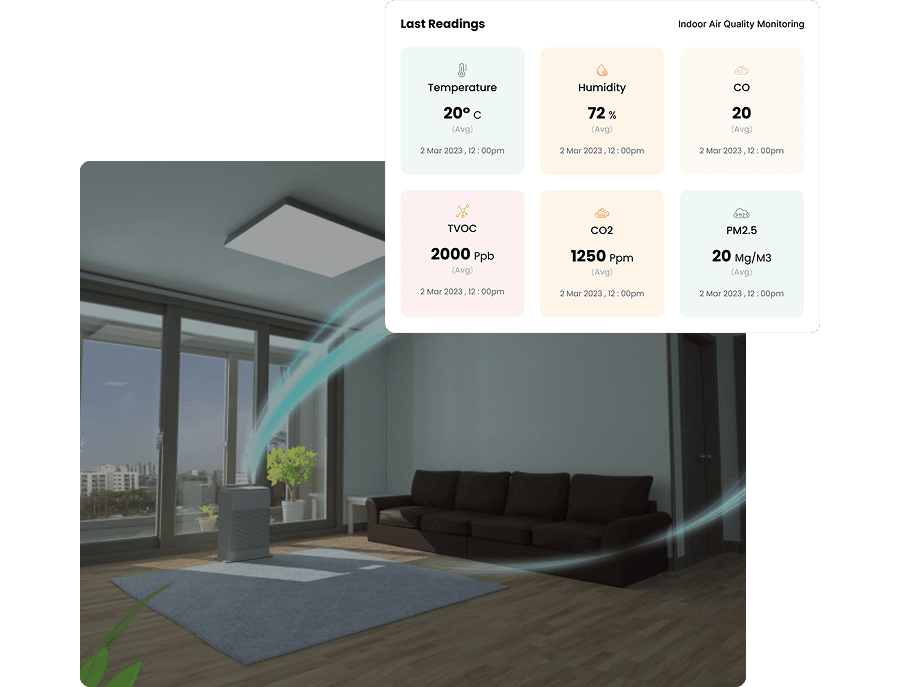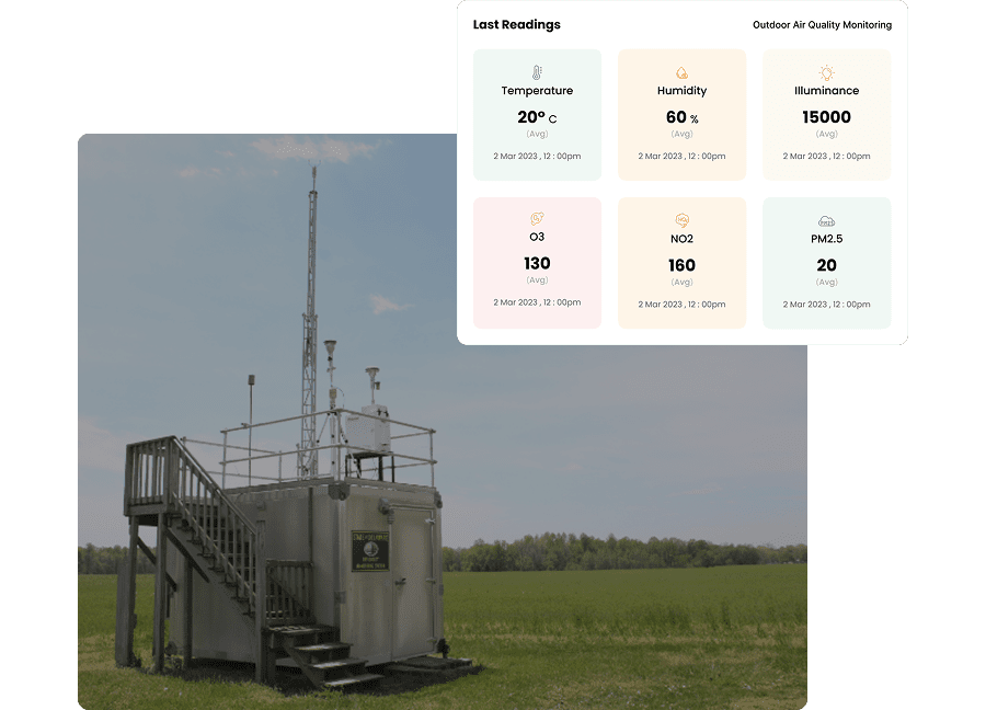 يستخدم حلنا لإنترنت الأشياء الخاص بمراقبة جودة الهواء مستشعرات متطورة للمراقبة والتحليل المستمر لملوثات الهواء ومستويات درجة الحرارة والرطوبة.