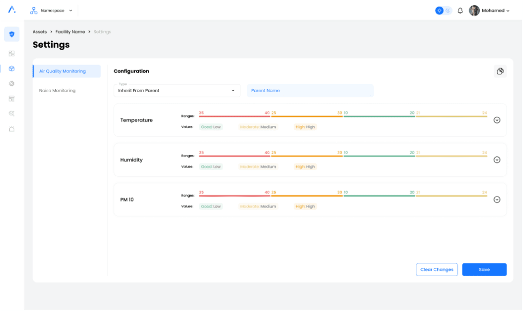 عيِّن حدوداً مخصصة (عتبات) لمعايير مختلفة، مما يتيح الإدارة الاستباقية لجودة الهواء لديك.