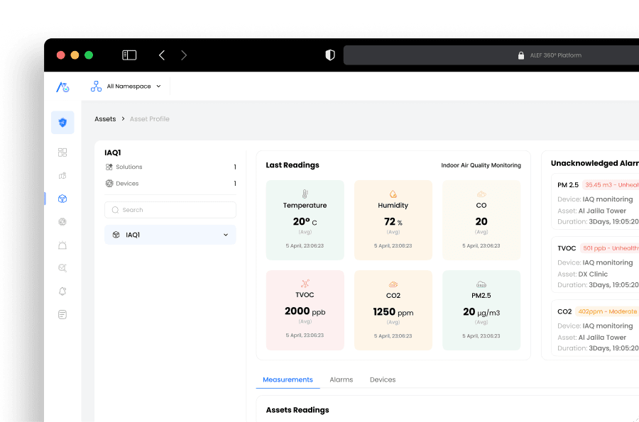 راقب بيئتك الداخلية باستخدام إنترنت الأشياء (IoT) وتتبَّع جودة الهواء الداخلي في الوقت الفعلي. تضمن أنظمة المراقبة المتقدمة لدينا حصولك على مساحة صحية ومريحة للعيش والعمل والتنفس فيها.