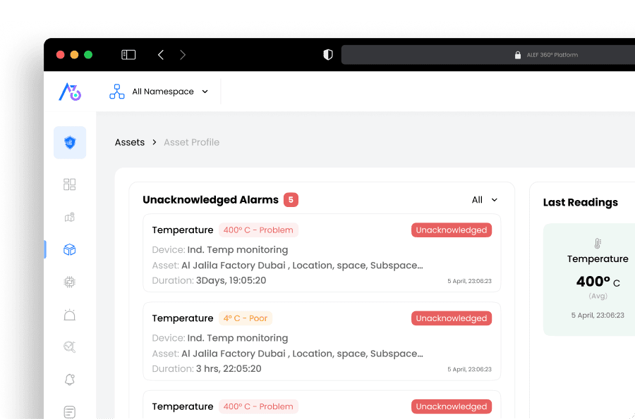 حلول مراقبة درجة الحرارة الصناعية، مصممة لتعزيز الكفاءة التشغيلية والسلامة في مجموعة واسعة من الصناعات. نقدم حلول مراقبة بديهية وفورية بالاستفادة من أحدث تقنيات إنترنت الأشياء.