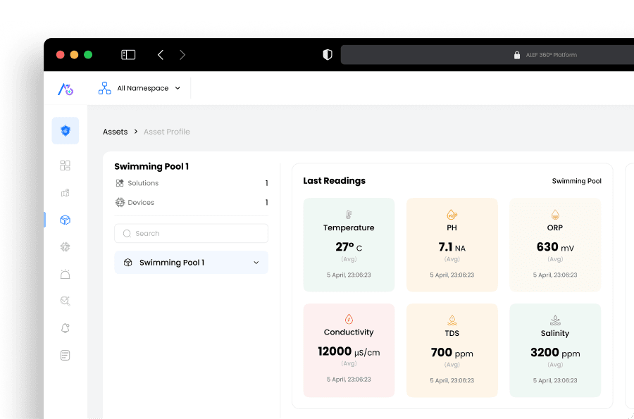 غيّر طريقة إدارتك لجودة المياه من خلال حلنا للمراقبة الذكية لجودة المياه. يعد حلنا الرفيق المثالي للحفاظ على أحواض السباحة وخزانات المياه والمنتجعات الصحية الخاصة بك.